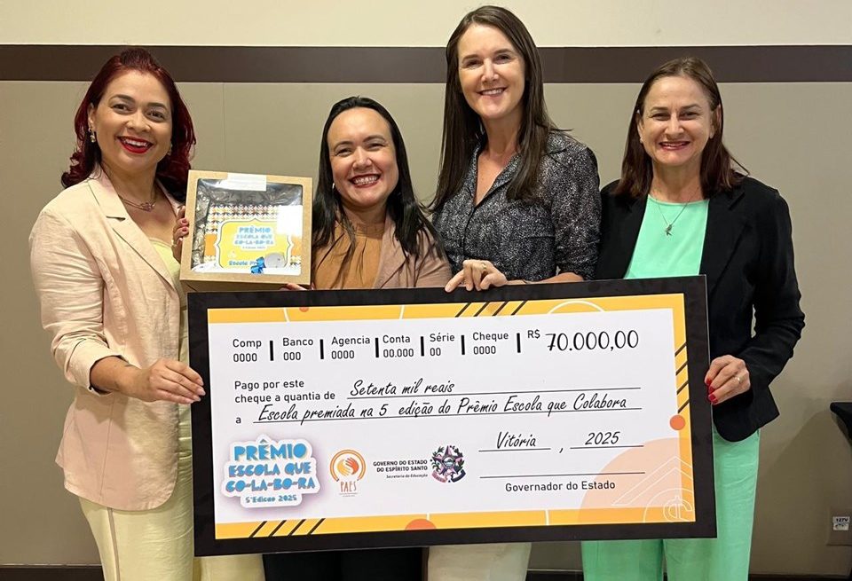 A premiação foi entregue durante a cerimônia da 5ª edição do Prêmio Escola que Colabora. O programa tem como objetivo promover ações colaborativas técnico-pedagógicas entre as escolas da rede pública, fortalecendo o regime de colaboração entre o estado e os municípios capixabas.