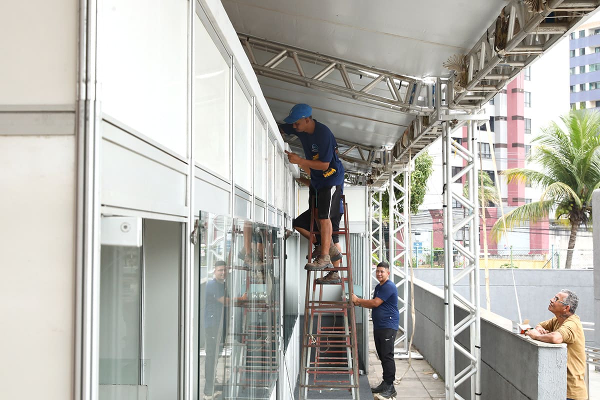 A estrutura ao lado da Ales reunirá estandes, assim como a nova montada no estacionamento externo do Legislativo, na qual funcionará o palco, a praça de alimentação e uma novidade: uma casa de estuque, também conhecida como pau a pique e telhado de palha para visitação.